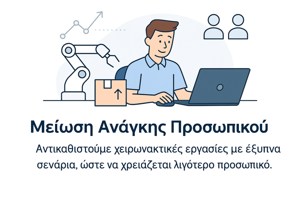 Αντικαθιστούμε χειρωνακτικές εργασίες με έξυπνα σενάρια, ώστε να χρειάζεται λιγότερο προσωπικό.