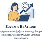 Παρέχουμε υποστήριξη και επανασχεδιασμό διαδικασιών, εξασφαλίζοντας μετρήσιμα αποτελέσματα.